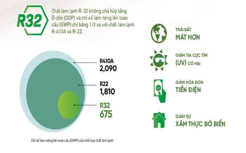 Hiệu suất làm lạnh cao nhờ sử dụng môi chất lạnh R32