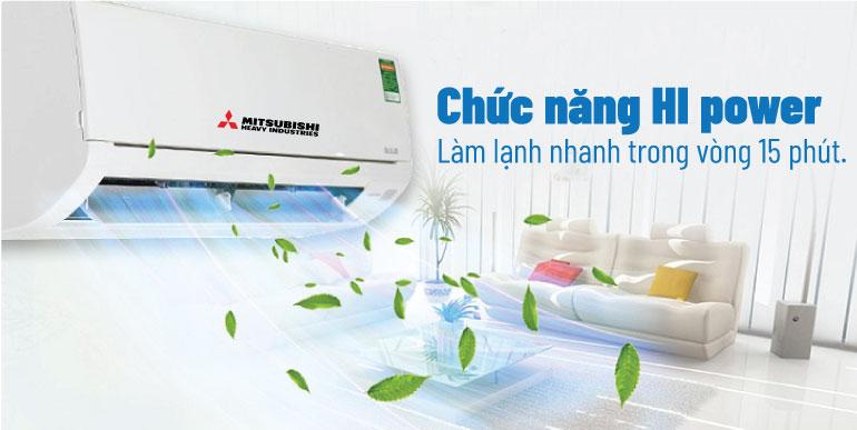 Máy lạnh inverter Mitsubishi Heavy với chế độ Hi Power có khả năng hành liên tục ở công suất cao, rút ngắn thời gian làm lạnh trong vòng 15 phút với công suất tối đa. Nhờ đó, người dùng có thể nhanh chóng tận hưởng không khí mát lạnh mà không cần chờ đợi quá lâu.