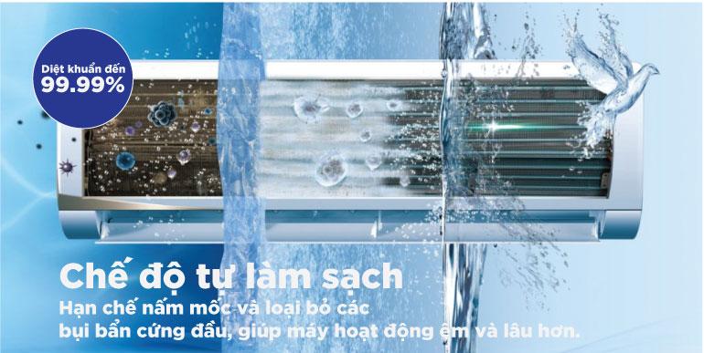 Chế độ tự làm sạch có khả năng làm khô dàn lạnh trong vòng 2 giờ, giúp loại bỏ các bụi bẩn cứng đầu, hạn chế nấm mốc, cho máy luôn hoạt động hiệu quả.